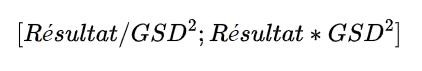 Un intervalle de confiance à 95%, c'est-à-dire un intervalle [Borne Inférieure ; Borne Supérieure] dans lequel le résultat a 95% de chance d'être compris